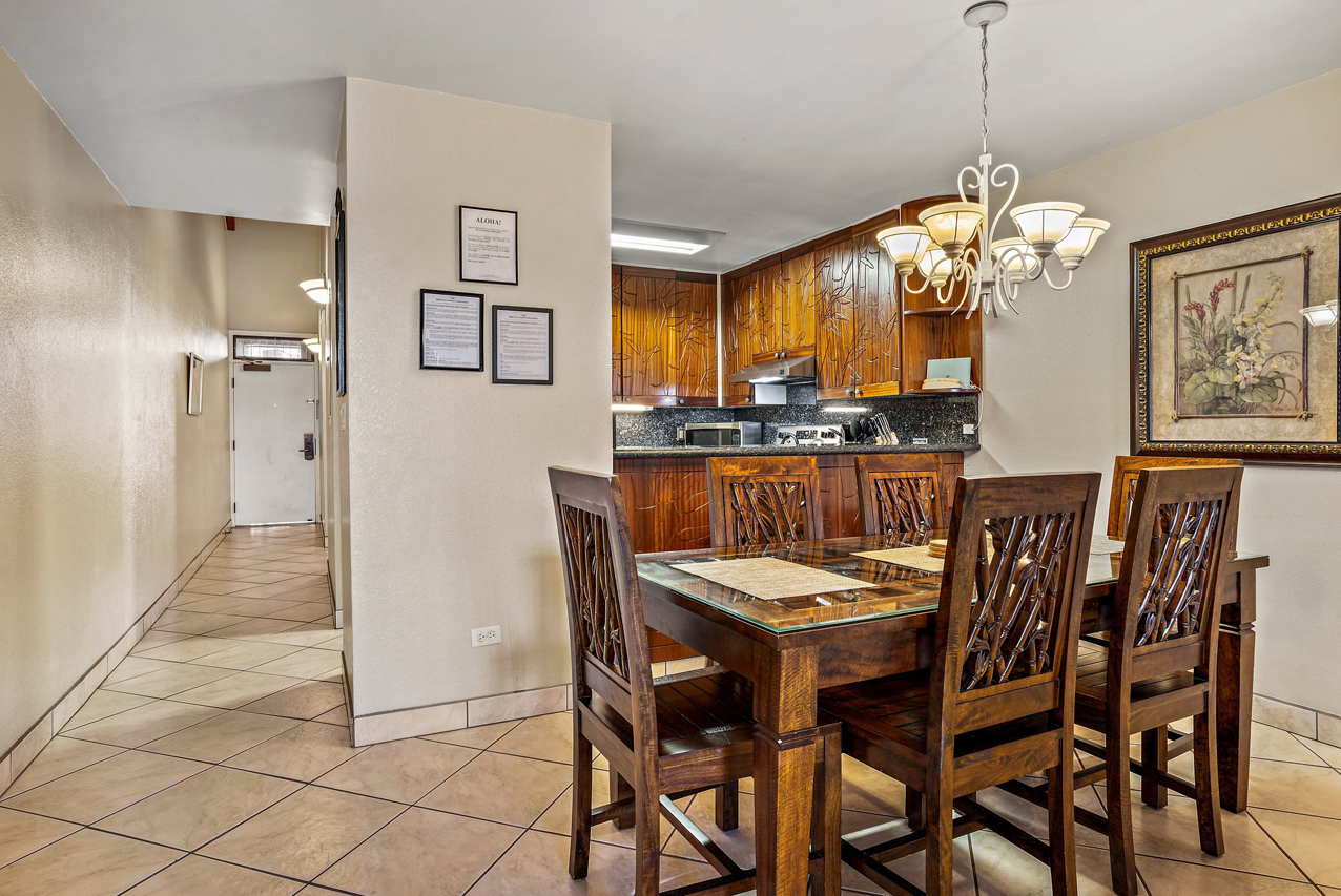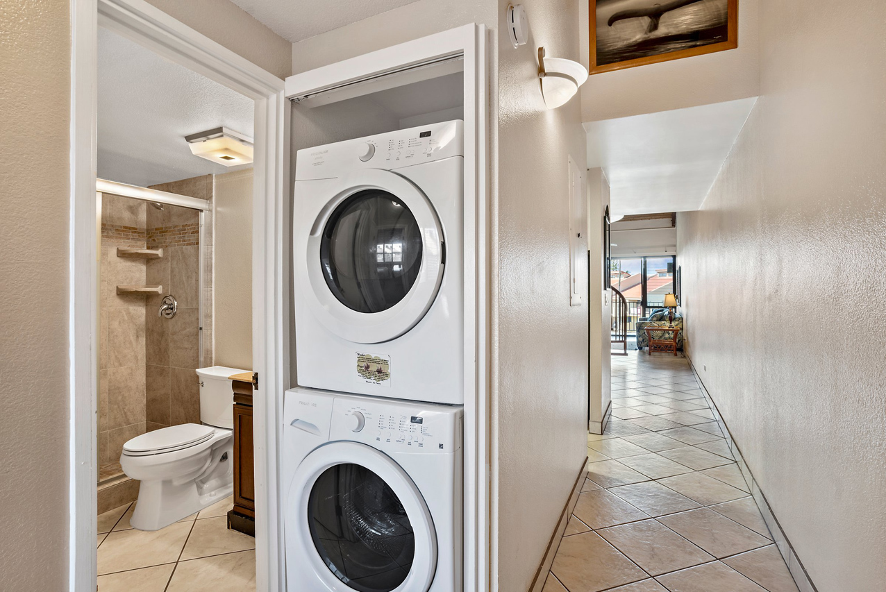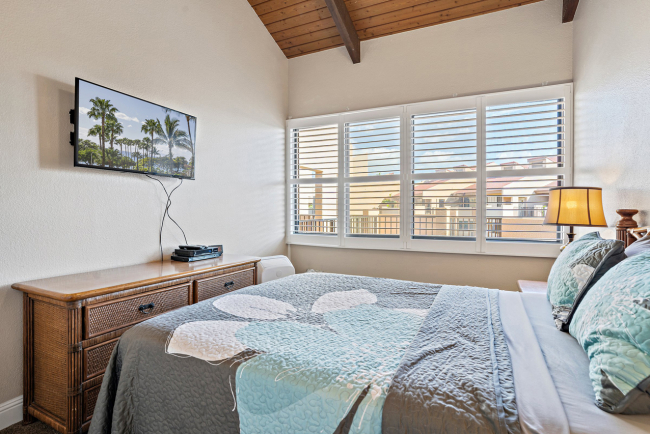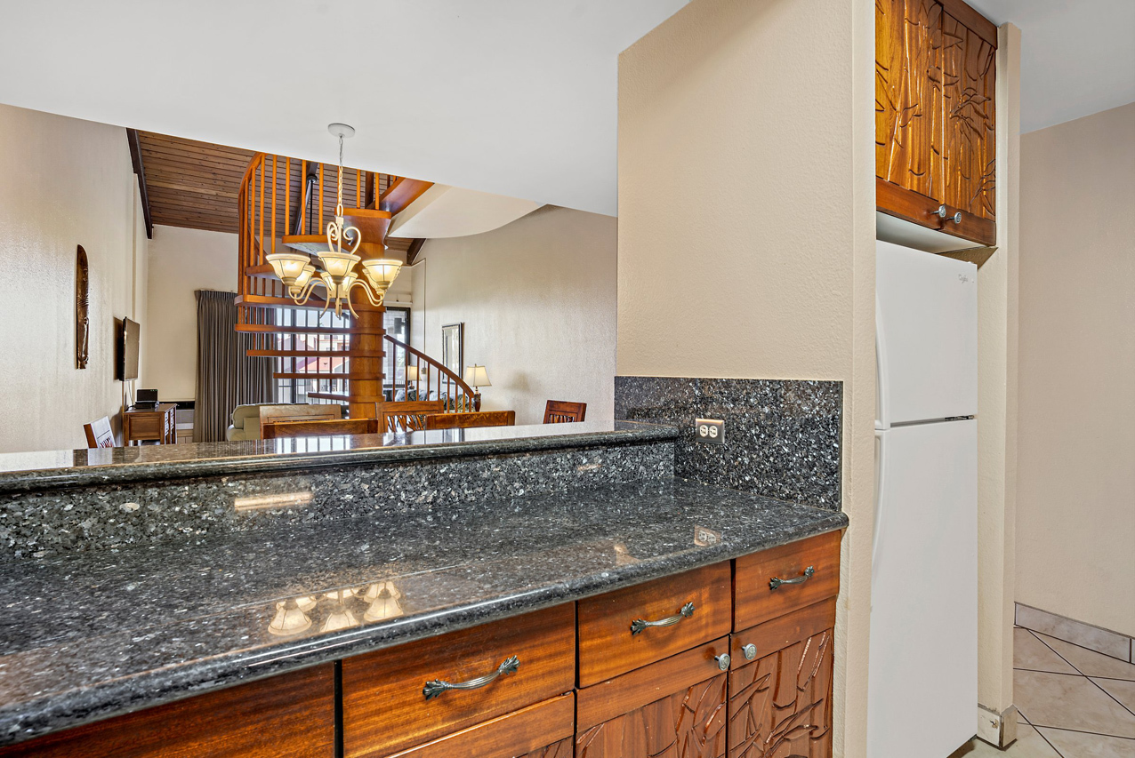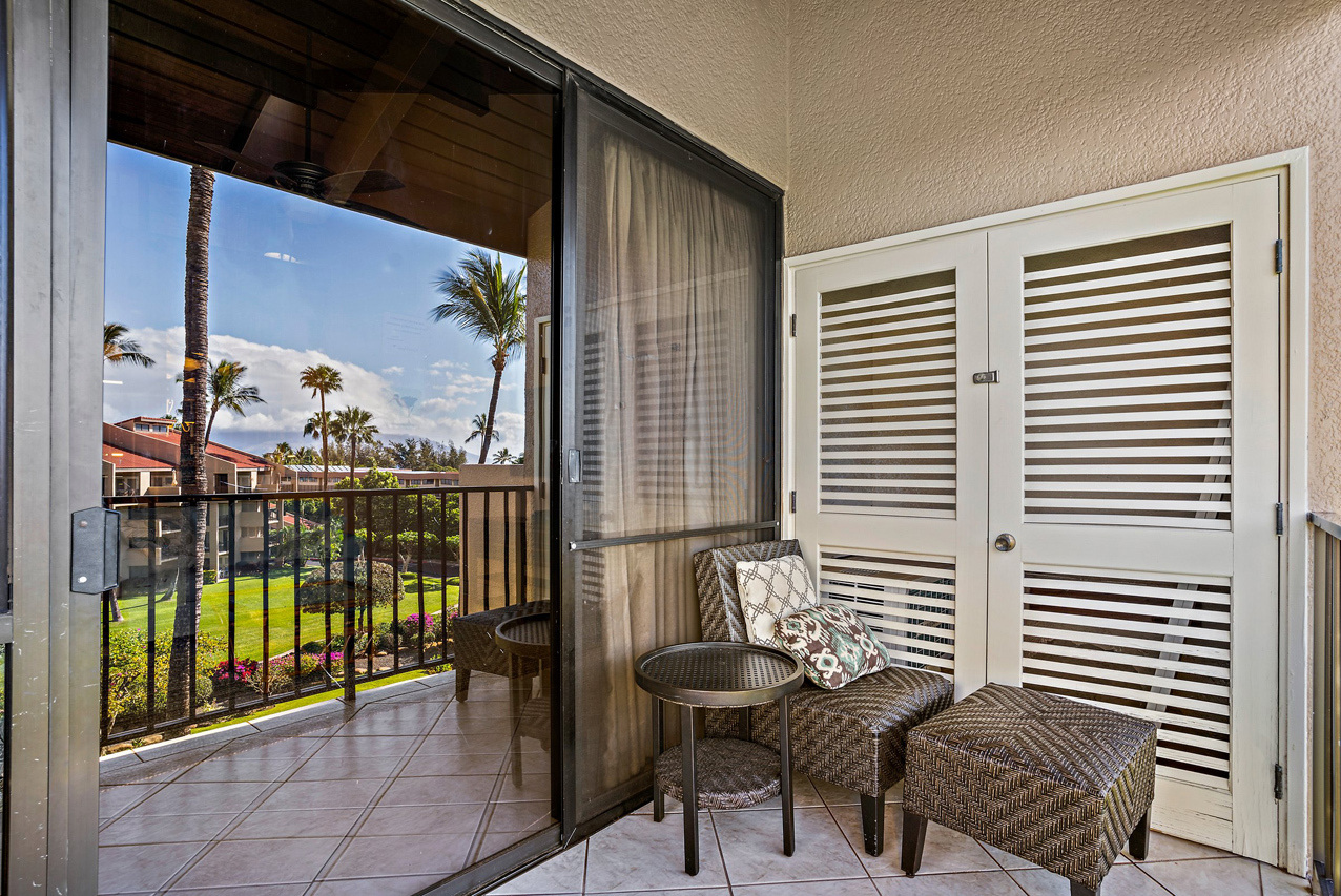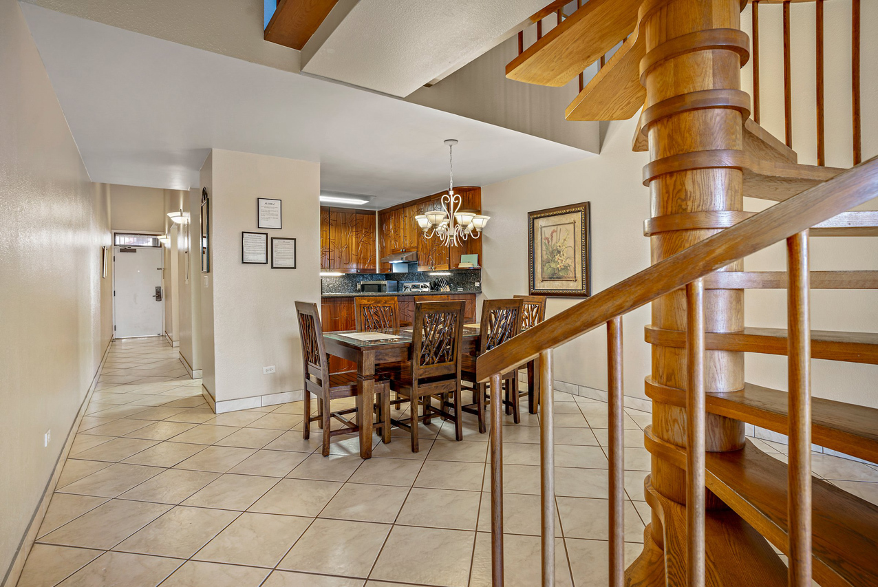 Kamaole Sands 7-402 has everything you're looking for in a Maui vacation condo: Ocean views, 2 bedrooms and 2 full bathrooms, spacious floor plan with high vaulted ceilings, and a great top-floor location! Wonderful presence on the interior courtyard with lush landscaping perfectly framing the ocean views seen from the lanai. Open beam vaulted ceilings with natural wood tones add to the feeling warmth and hospitality. The front entry area, bathrooms, kitchen, and great room areas are completely tiled. There are energy efficient stainless steel appliances and custom Hawaiian style cabinets featured in the kitchen. The home is tropically furnished and offers both indoor and outdoor dining. The architecturally timeless spiral oak staircase leads to the upper level bedroom and ensuite bath. This is a fully furnished, turnkey condominium located across the street from one of Maui's most beautiful sandy beaches, Kamaole III. Close to parks, shops and restaurants, Kamaole Sands is one of the most popular vacation rental complexes in South Maui. Amenities include a beautiful pool, sun decks, 2 large spas, 4 tennis courts, 8 BBQ areas, an activity center, and security. Freshwater ponds and waterfalls add a lush tropical feel to the property. For world class golfing and shopping, you can take a short drive to Wailea. Schedule a private showing today!
