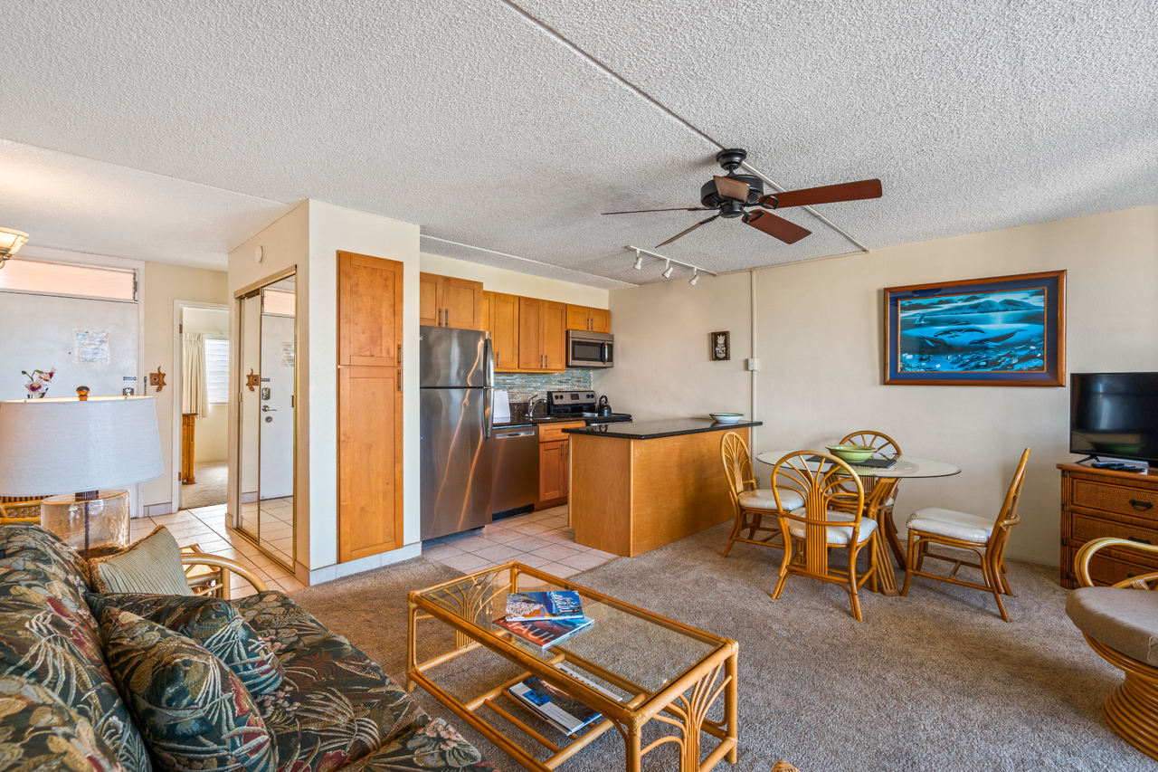 The one you’ve been waiting for at Kihei Kai Nani #248. HOTEL ZONED and move in ready! Your Maui escape officially begins here! Perfectly situated in the vibrant heart of South Kihei, you simply cannot beat this location in Hawaii. Just steps from the golden sands of Kamaole Beach Park II, this beautiful 1-bedroom, 1-bath, 621 sq. ft. vacation rental offers both comfort and island convenience. Easily one of the best locations in the complex overlooking the pool with ocean views. The large bedroom offers a serene retreat with oversized windows and mirrored closet doors, while the bathroom showcases a walk-in shower, modern tilework, and a granite vanity. Offered fully furnished, this turn-key unit is ready for immediate enjoyment. Kihei Kai Nani #248 also enjoys extra privacy, set away from the main road, while still being conveniently close to the center of the complex. Kihei Kai Nani places you in the middle of South Kihei’s best, with restaurants, shops, and entertainment right outside your door. On-site amenities include a swimming pool, multiple BBQ areas, and a community pavilion. Paradise awaits at Kihei Kai Nani 248!