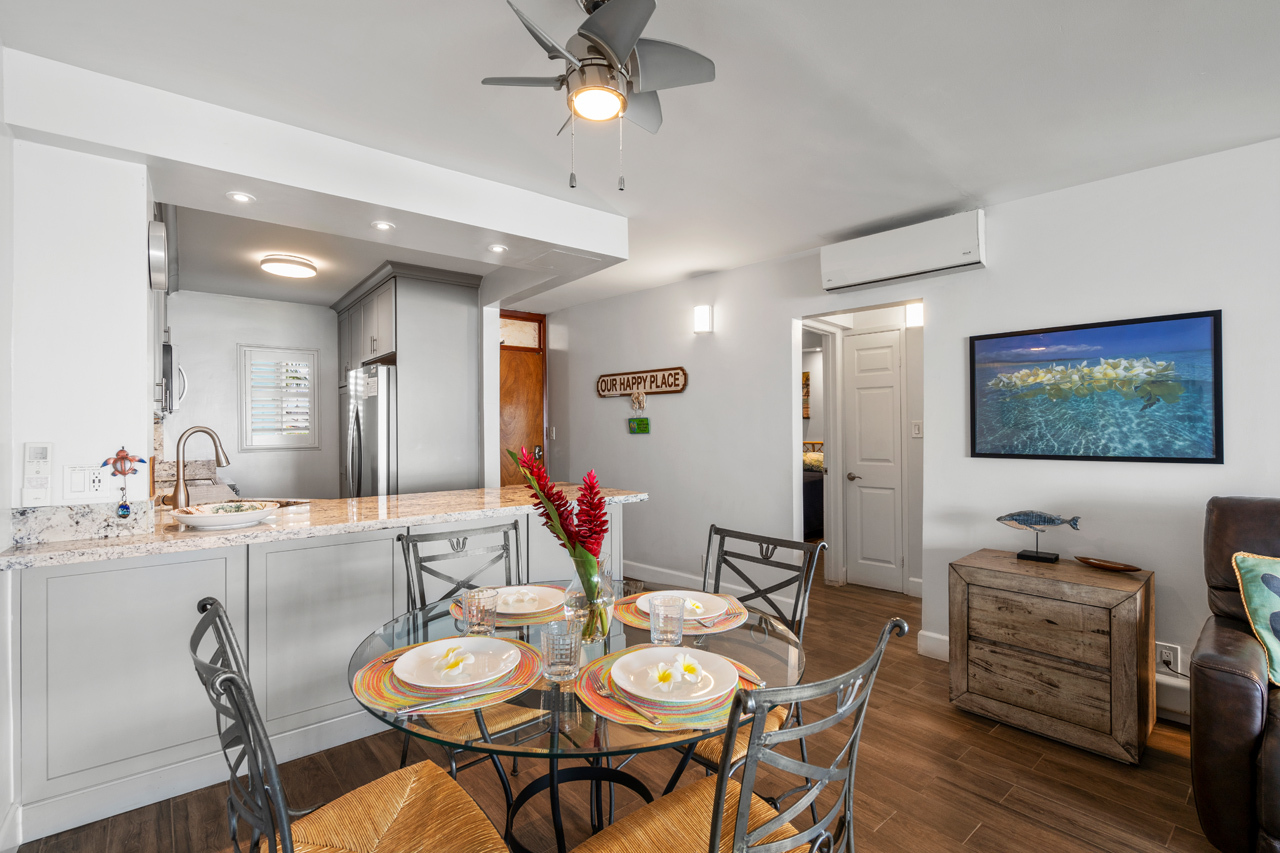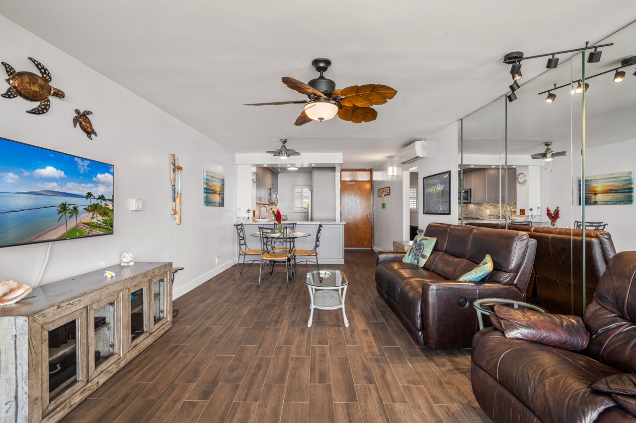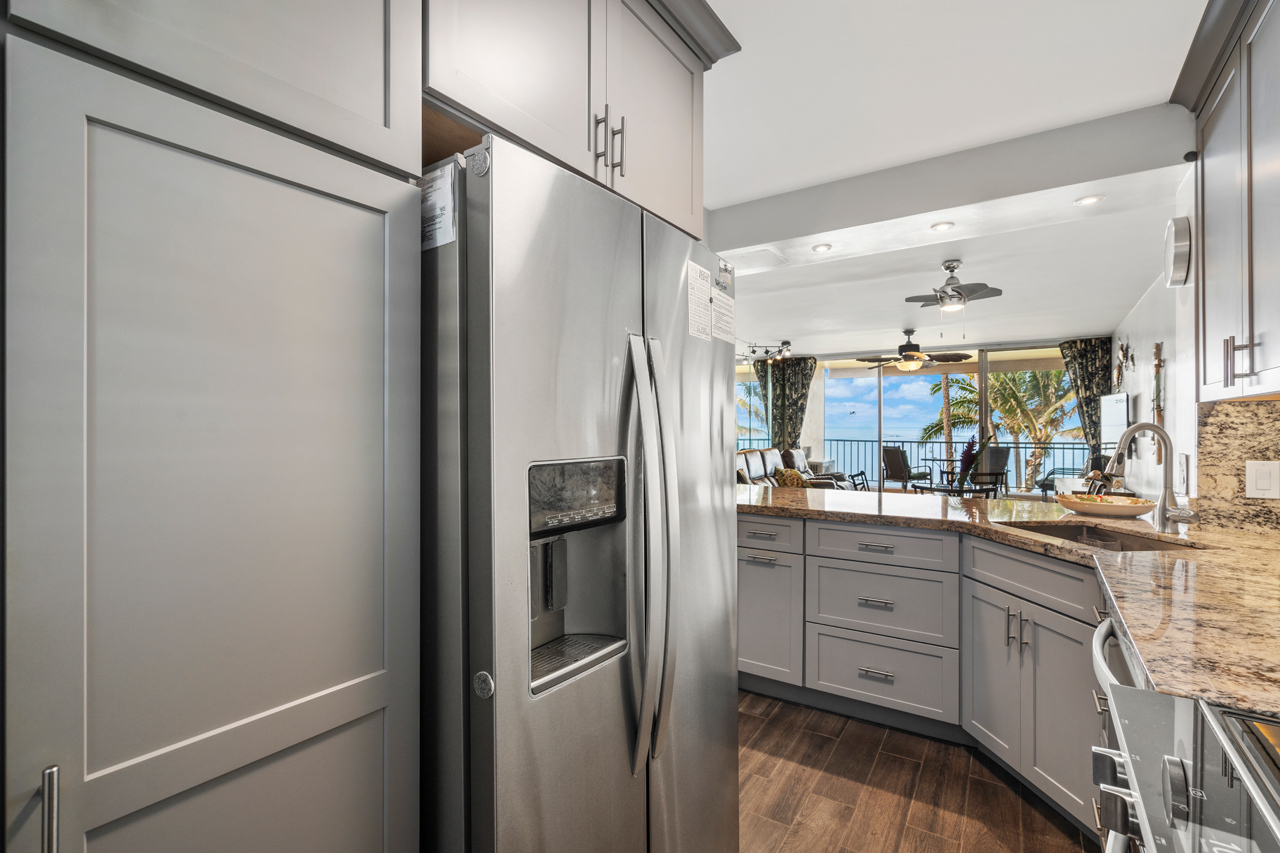Direct oceanfront unit competitively priced to SELL in popular HOTEL-ZONED community! Menehune Shores #217 is perfectly positioned approx 100 feet from the shoreline with unobstructed panoramic ocean views and convenient access to sandy beaches on both sides and the famed historic Ko'ie'ie Fishpond. This beautifully upgraded and immaculately maintained 1-bedroom, 661 square foot condo has an unbeatable location and has been a very popular vacation rental with more than 200 ***** FIVE STAR reviews. Relax on the spacious private covered lanai to the soothing sounds of ocean waves while you marvel at sunsets and seasonal humpback whales. Offered turn-key and fully furnished, Unit #217 was upgraded and remodeled with clean & modern ceramic tile flooring, granite countertops, stainless steel appliances, refined wall colors, plantation shutters in the bedroom and kitchen, and tasteful decor details throughout. Split A/C units in both the living room and bedroom. This well located condo has been meticulously cared for and the great pride of ownership makes it feel more like a private residence. Perfect for quick access to swimming, snorkeling, paddleboarding, kid friendly beach at the fishpond, and all the convenient shops and restaurants of central Kihei. On-site amenities at Menehune Shores include oceanfront pool, shuffleboard, oceanfront BBQ area, rooftop entertaining area with grills and amazing 360-degree views, on-site dining at the award winning Monsoon Bar & Grill, and ample on-site parking.